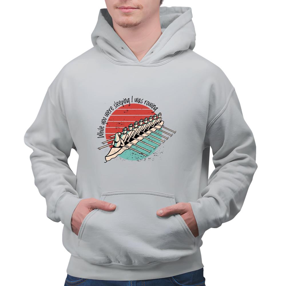 Retro Sunset Rowing Team Gift Inspirational Quote for All Age Groups Gray and Muticolor Unisex Hoodie