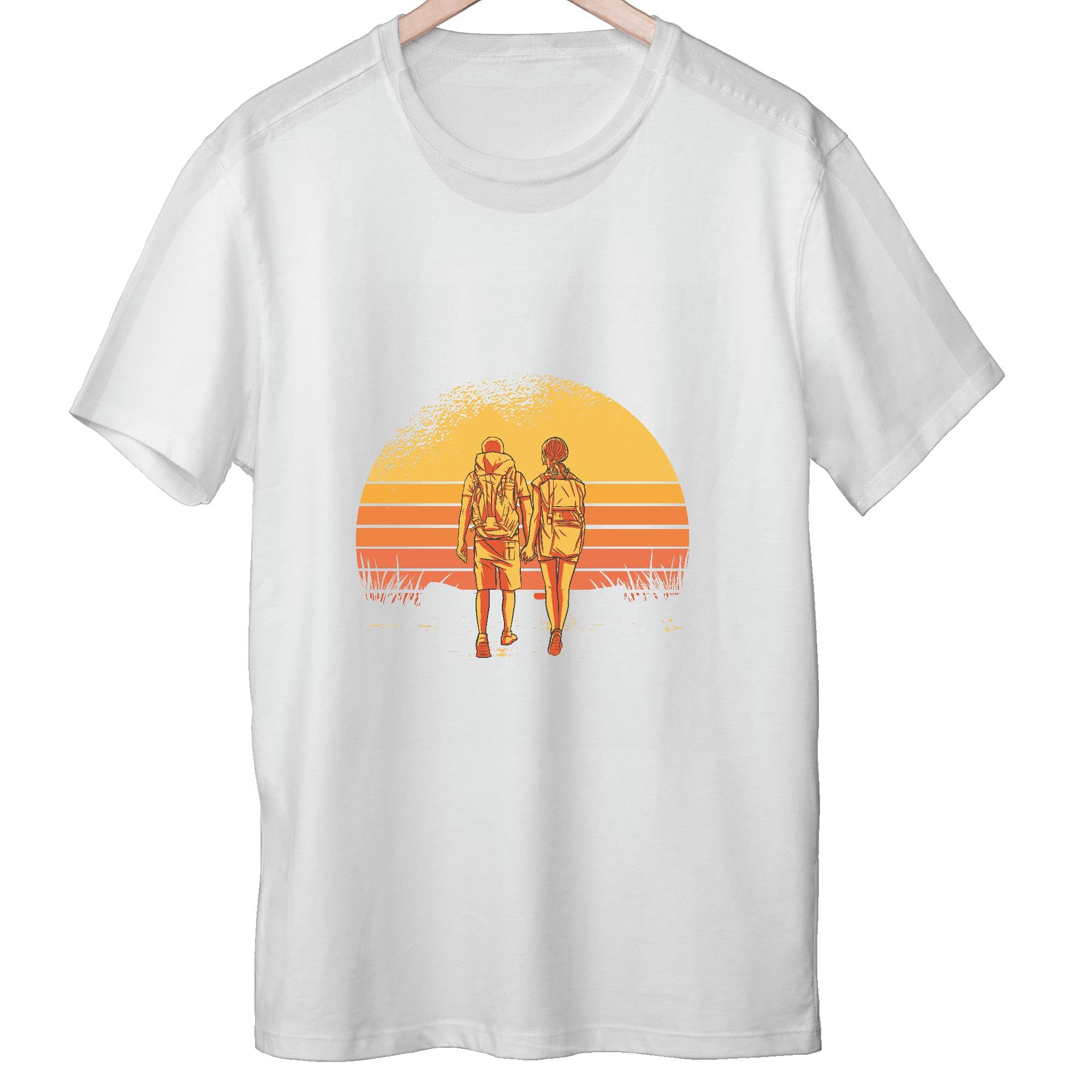 Retro Sunset Hiking Gift for Couples Climbing Adventure Men Women White Gray Multicolor T shirt
