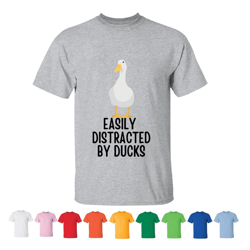 Retro Vintage Easily Distracted By Ducks Graphic Men Women White Gray T shirt