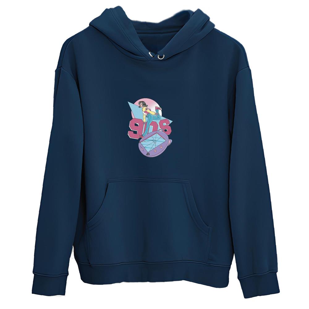 Retro Vibes Pink Girl Design Gift for 90s Generation Perfect Gift for Her Navy and Muticolor Unisex Hoodie