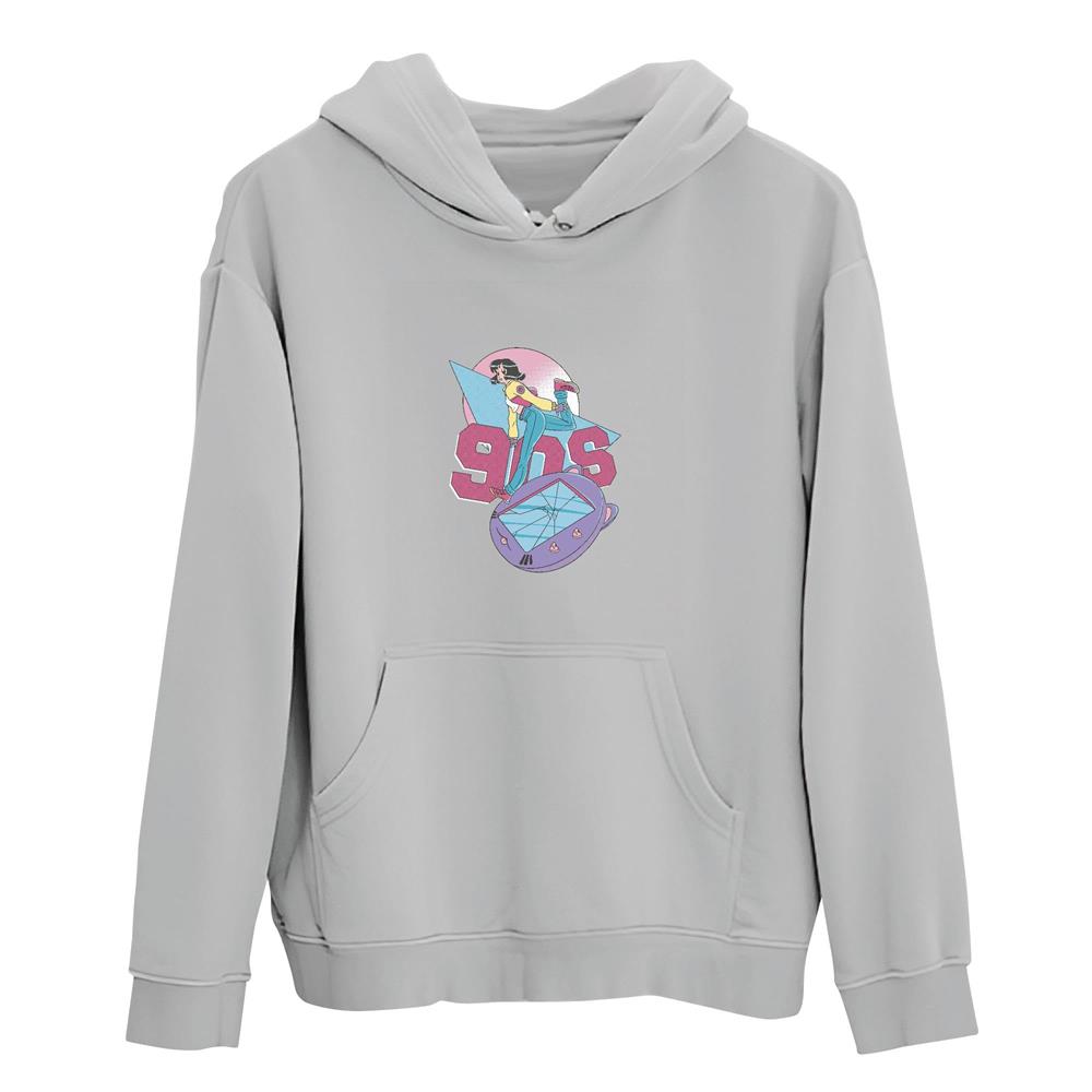 Retro Vibes Pink Girl Design Gift for 90s Generation Perfect Gift for Her Gray and Muticolor Unisex Hoodie