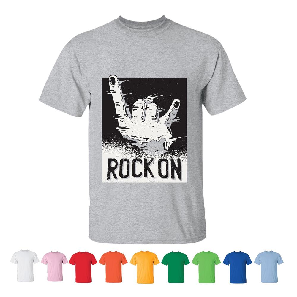 Rock On Hand in Hand Gesture Funny Gift for Music Lovers and Rockers Men Women White Gray T shirt