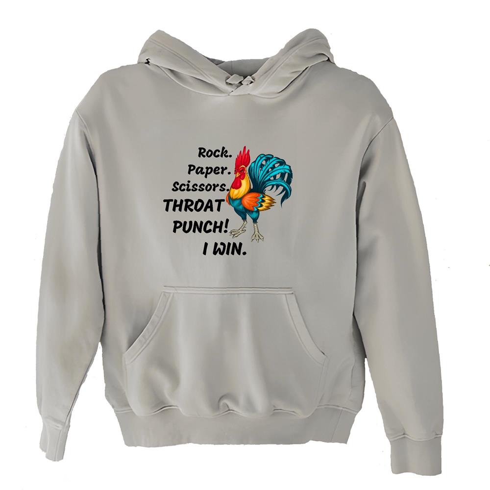 Rock papers scissor Throat punch saying funny White and Muticolor Unisex Hoodie