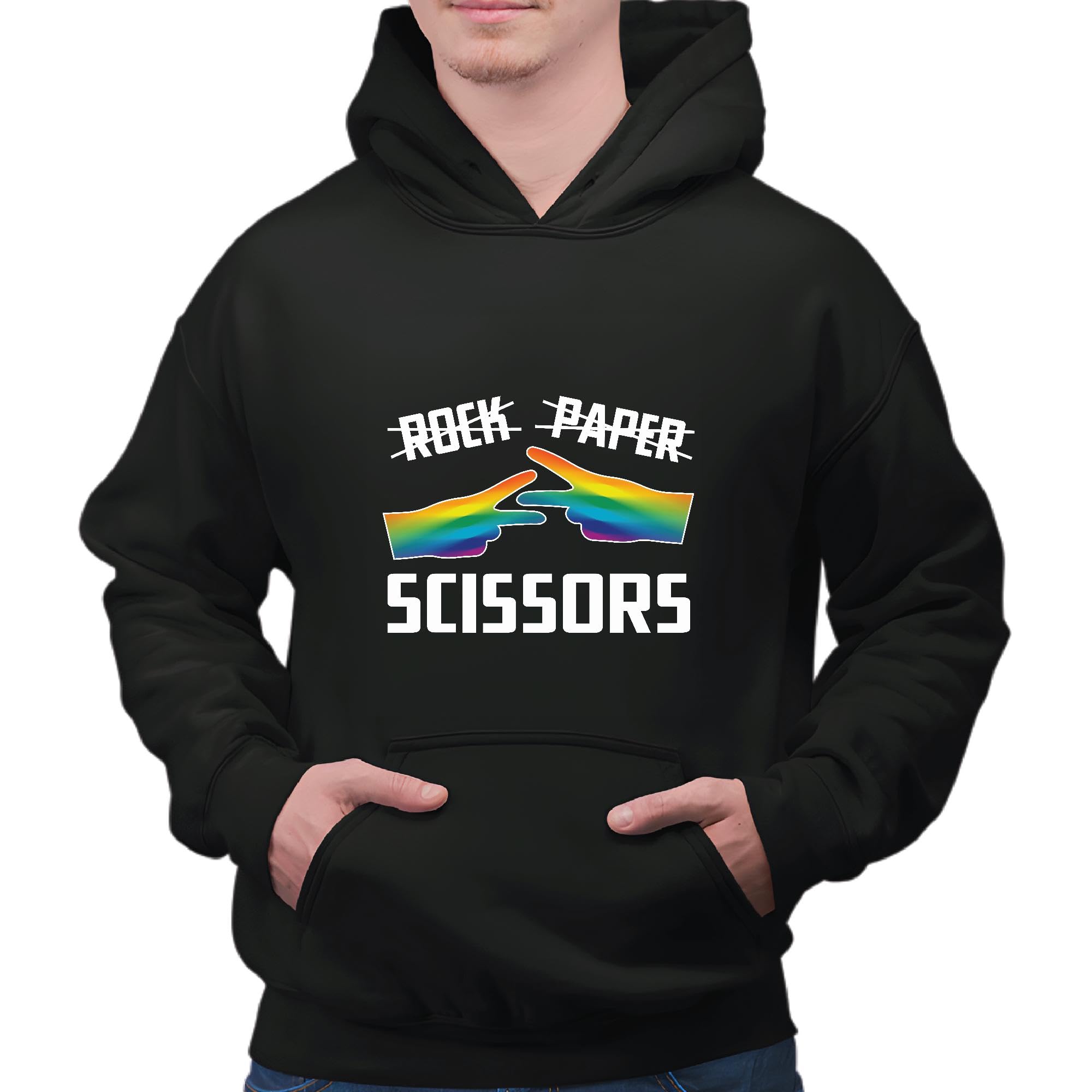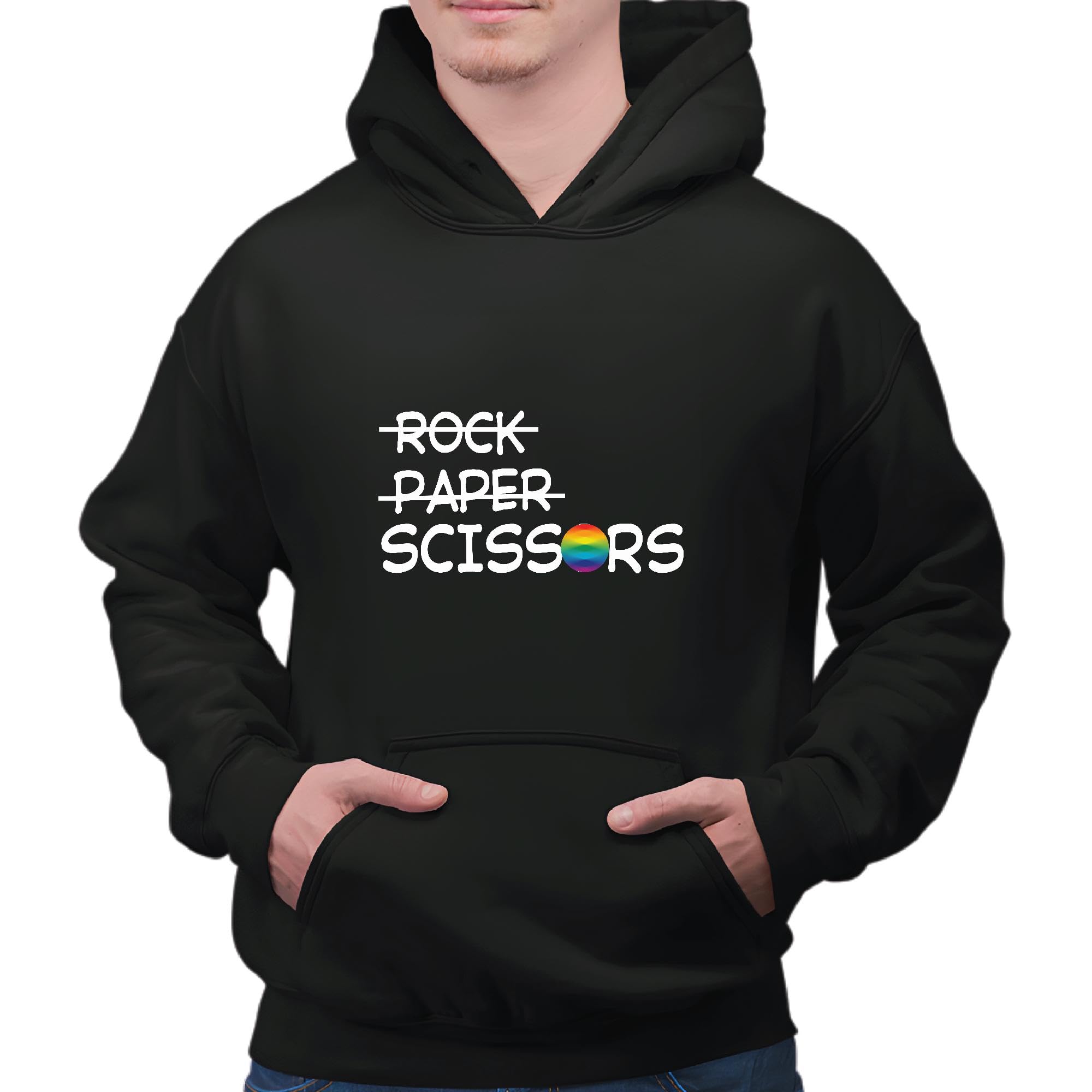 Rock Paper Scissors LGBTQ Gay Pride Proud Rainbow Flag for LGBT community Black and Muticolor Unisex Hoodie