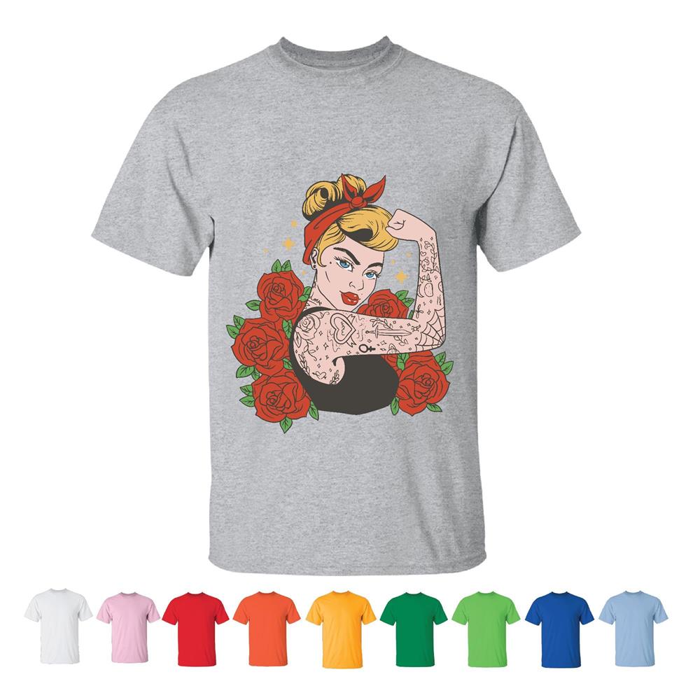 Rockabilly Tattooed Girl Gift Idea Perfect Present for Rock n Roll Lovers Suitable Men Women White Gray T shirt