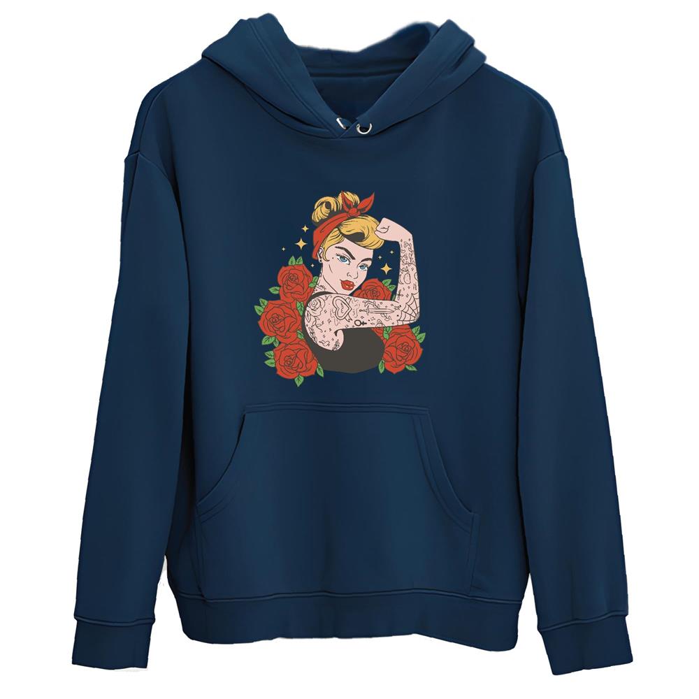 Rockabilly Tattooed Girl Gift Idea Perfect Present for Rock n Roll Lovers Suitable Navy and Muticolor Unisex Hoodie