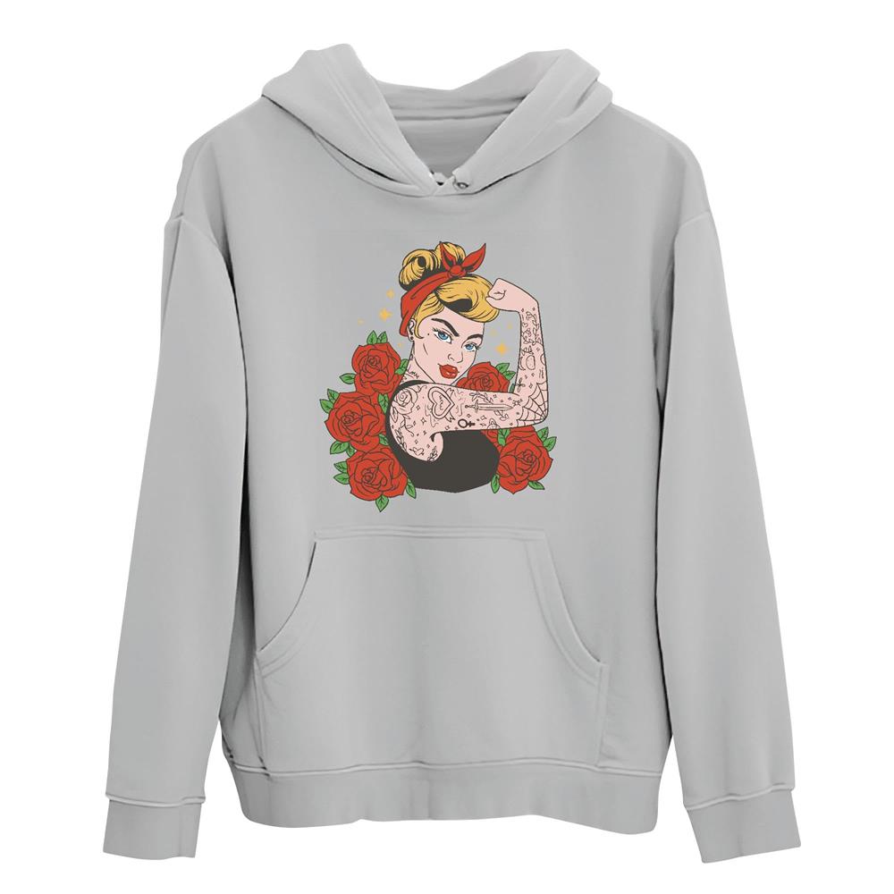 Rockabilly Tattooed Girl Gift Idea Perfect Present for Rock n Roll Lovers Suitable Gray and Muticolor Unisex Hoodie