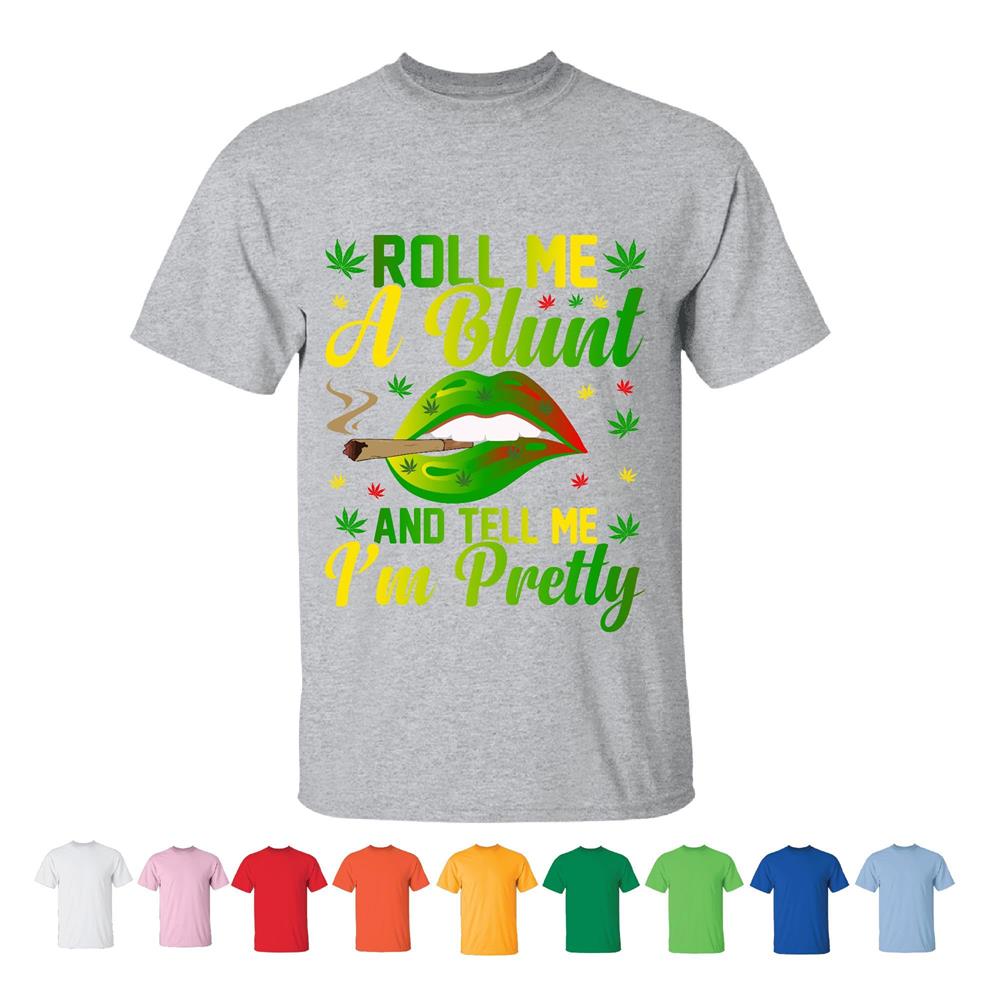 Roll me a Blunt tell me I am pretty funny for Smoker Cigarette Tobacco user Nicotine addict Men Women White Gray T shirt