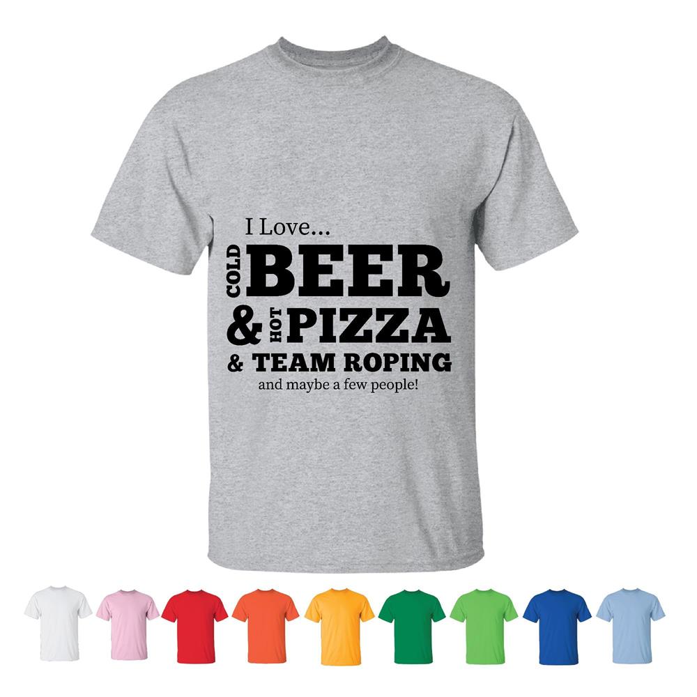 Rodeo roping I love cold beer pizza Men Women White Gray T shirt