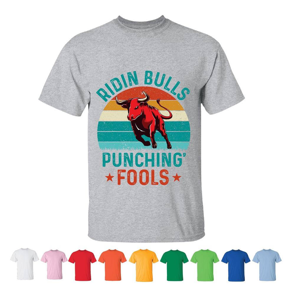 Rodeo Bull Riding Gift for Fools Punchers Men Women White Gray T shirt
