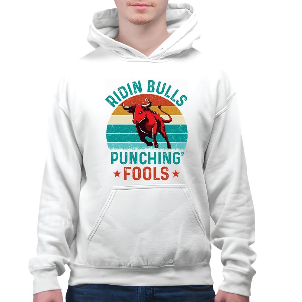 Rodeo Bull Riding Gift for Fools Punchers White and Muticolor Unisex Hoodie