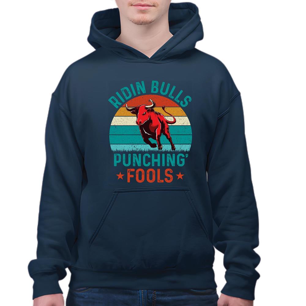 Rodeo Bull Riding Gift for Fools Punchers Navy and Muticolor Unisex Hoodie