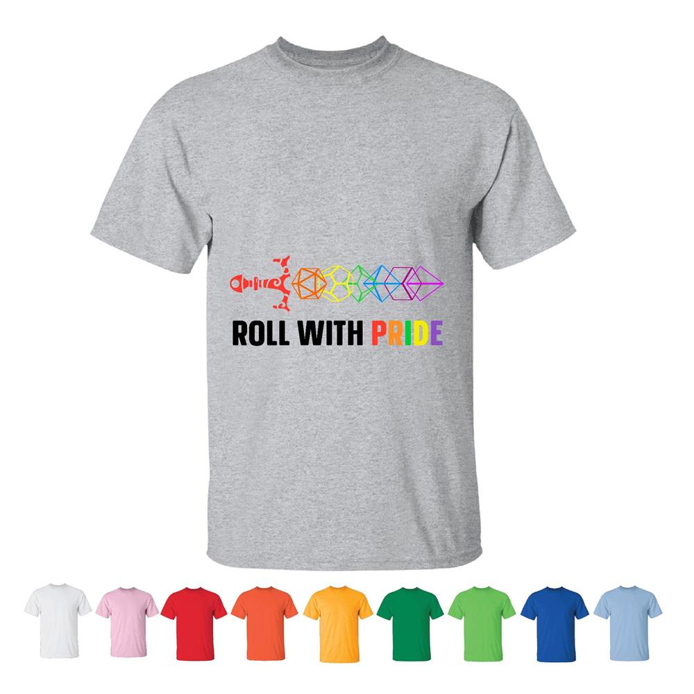 Roll with pride LGBT game playing rainbow color on sword LGBT community Men Women White Gray T shirt