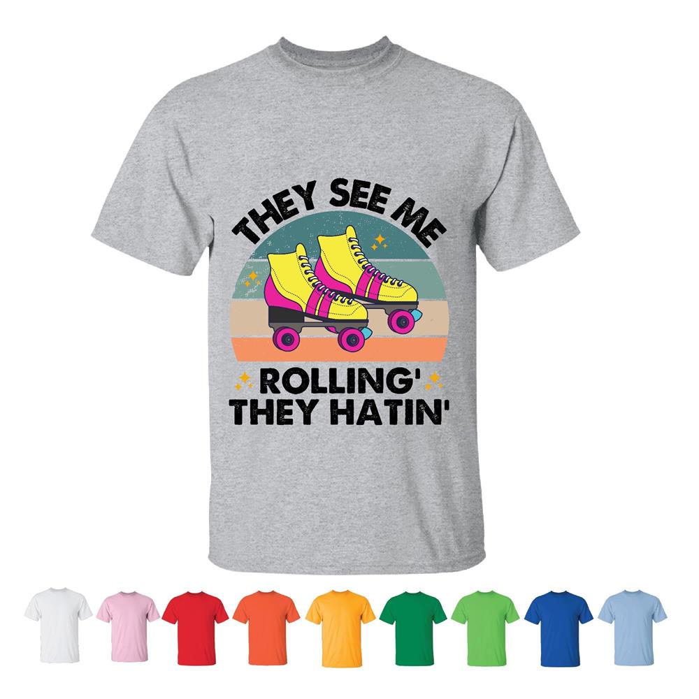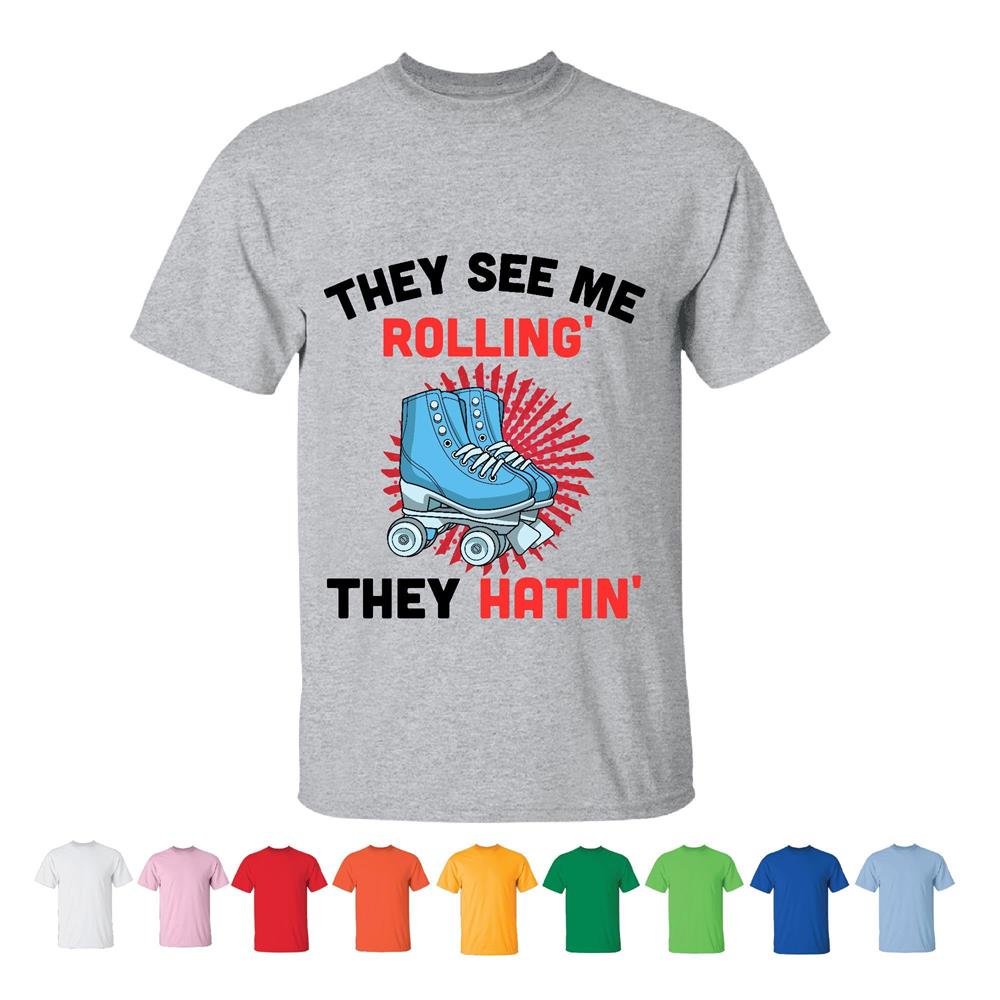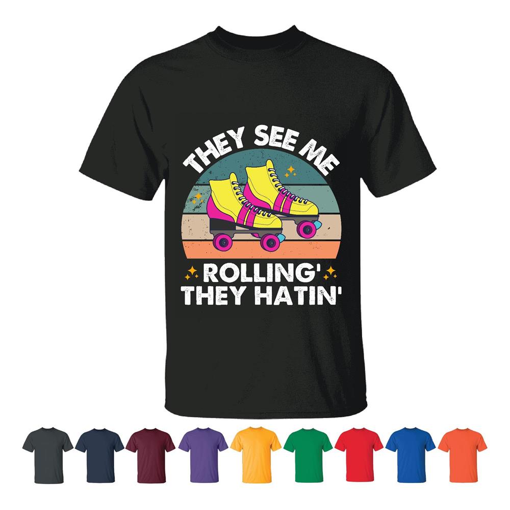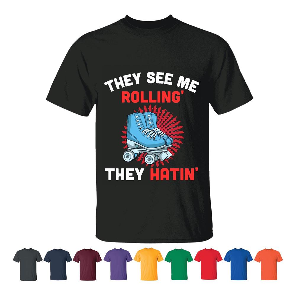 Roller Skating Skater Skate for Kids Teens Adults They See Me Rollin They Hatin Men Women Black T shirt
