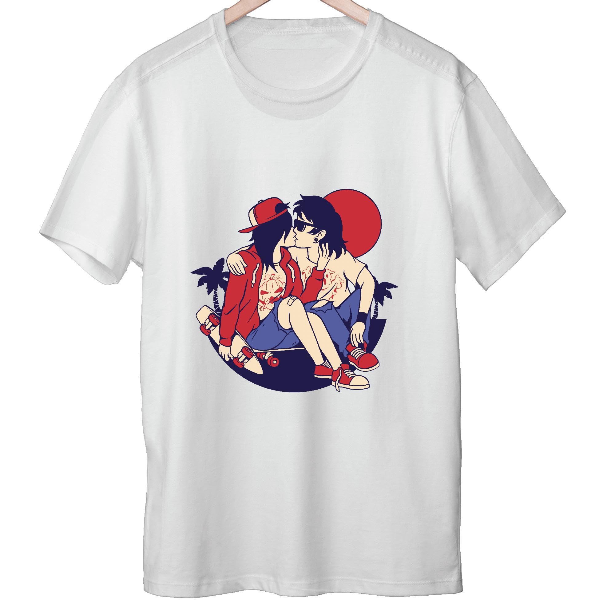 Romantic Gift for Couples Sports Themed Kissing Design Men Women White Gray Multicolor T shirt