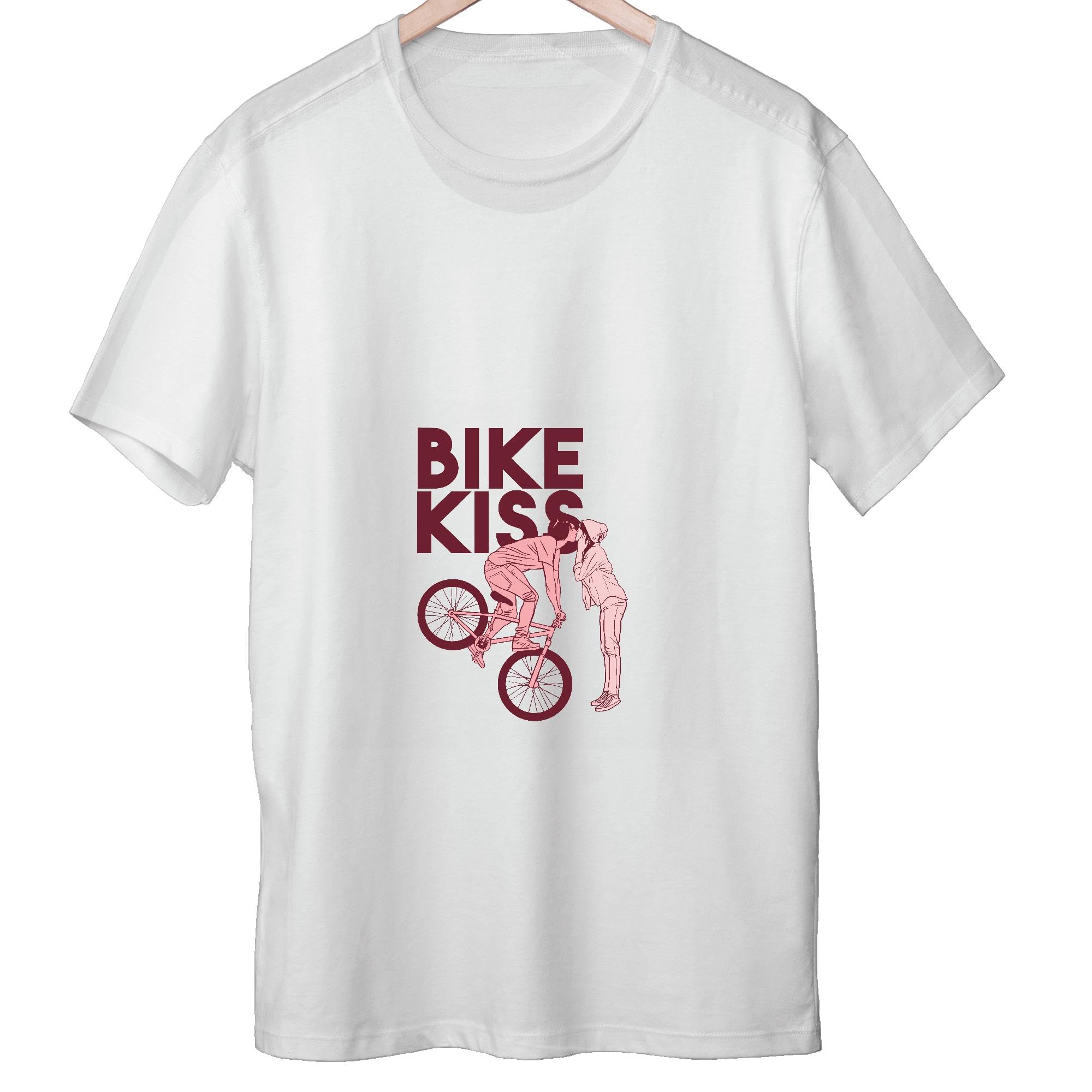 Romantic Gift for Couples Bike Kiss Caption for Anniversaries and Birthdays Men Women White Gray Multicolor T shirt