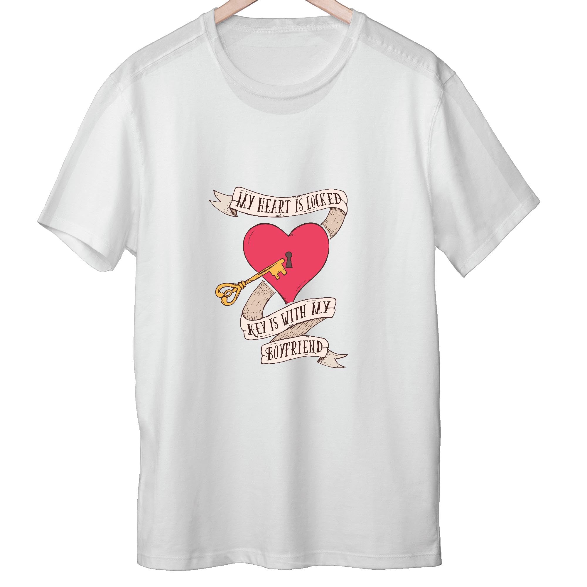 Romantic Gift for Couples Heart Key with Ribbon and Caption Present for Boyfriend Men Women White Gray Multicolor T shirt