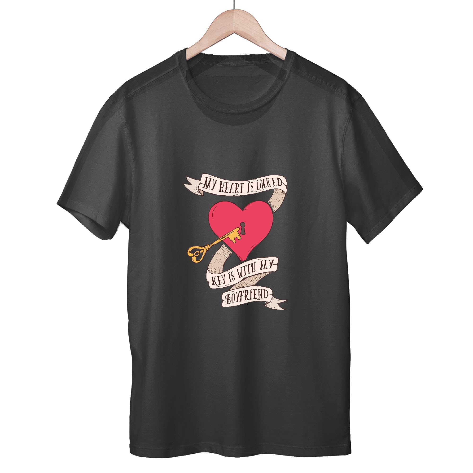 Romantic Gift for Couples Heart Key with Ribbon and Caption Present for Boyfriend Men Women Black Multicolor T shirt
