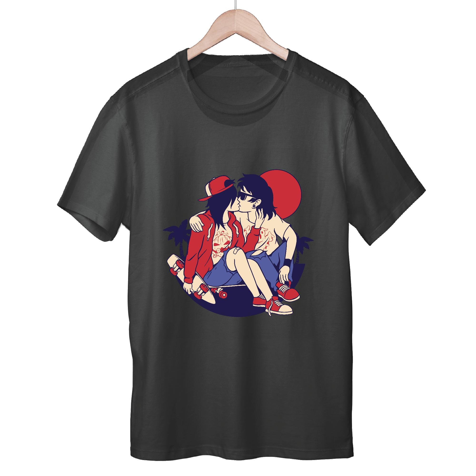 Romantic Gift for Couples Sports Themed Kissing Design Men Women Black Multicolor T shirt