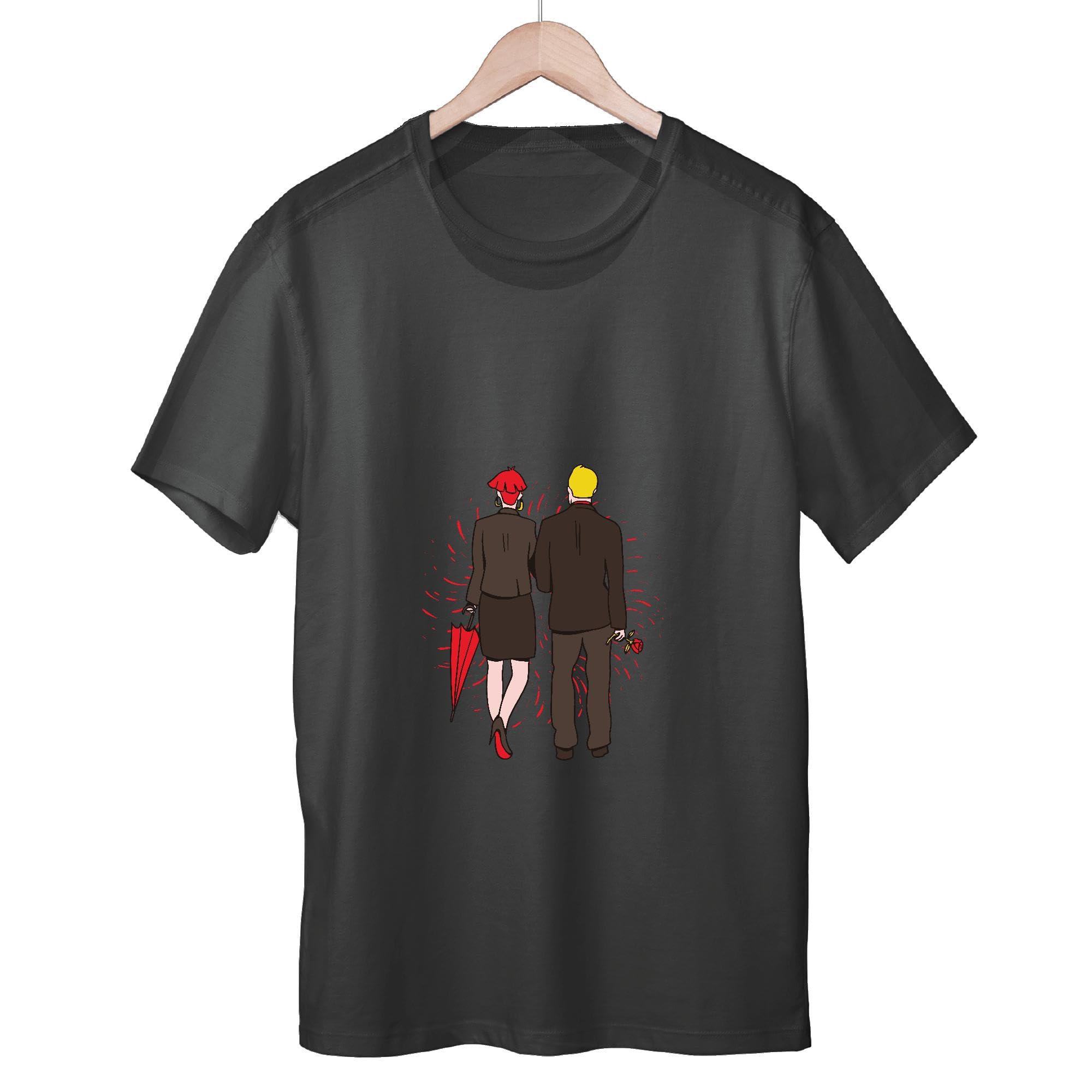 Romantic Gift for Couples Walking Together Seen From Behind Men Women Black Multicolor T shirt