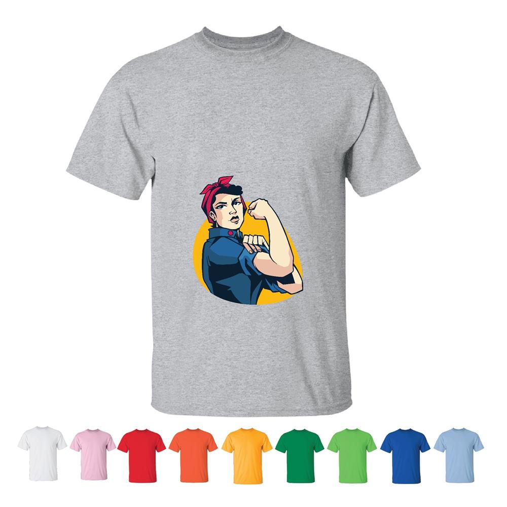 Rosie the Riveter Gift for Women Inspirational Illustration for Feminism Supporters Men Women White Gray T shirt