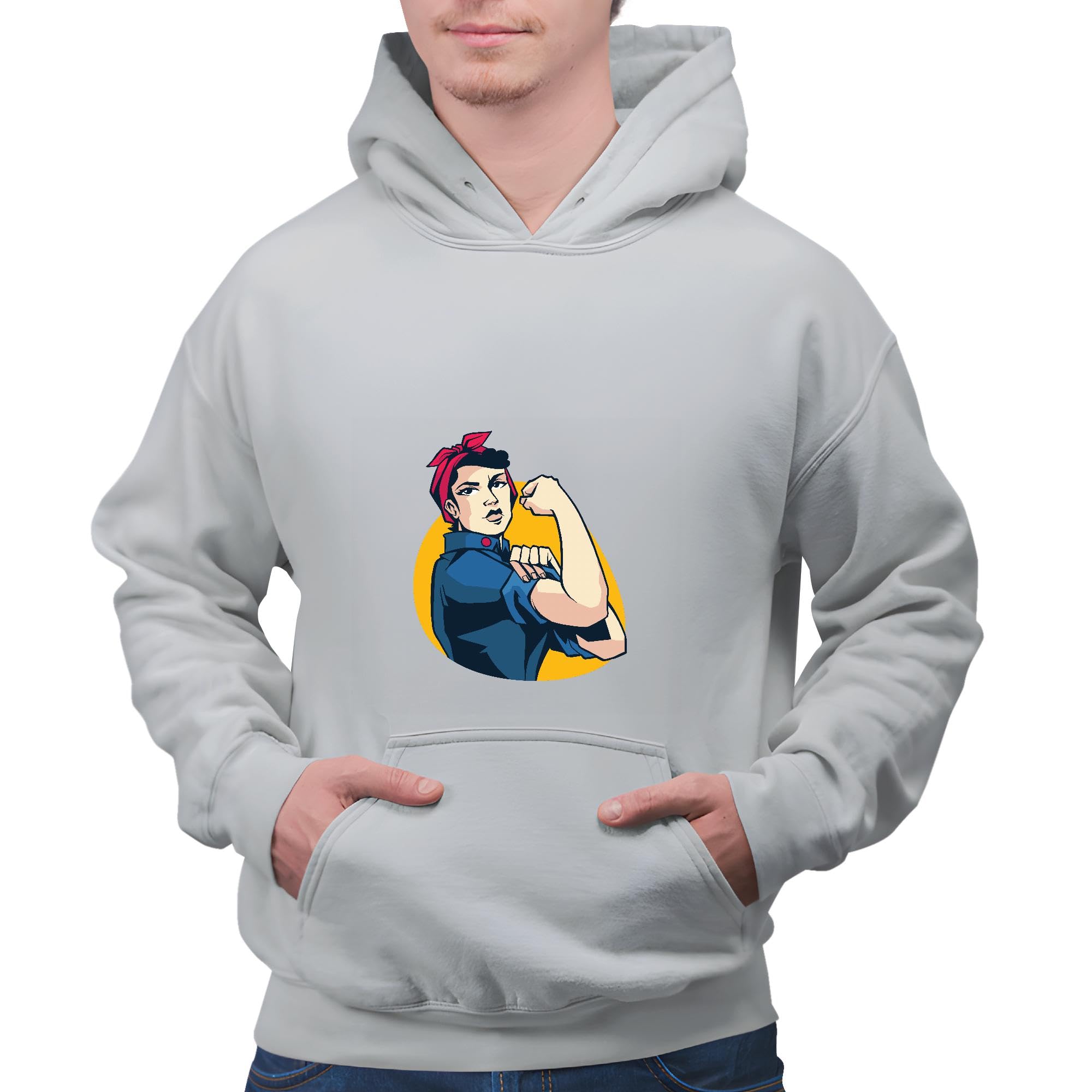 Rosie the Riveter Gift for Women Inspirational Illustration for Feminism Supporters Gray and Muticolor Unisex Hoodie