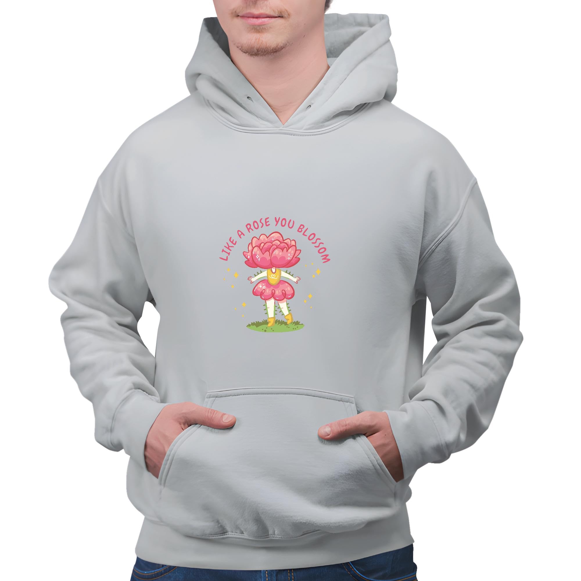 Rose Girl Gift Inspirational Quote for Girls Blossom and Shine Gray and Muticolor Unisex Hoodie