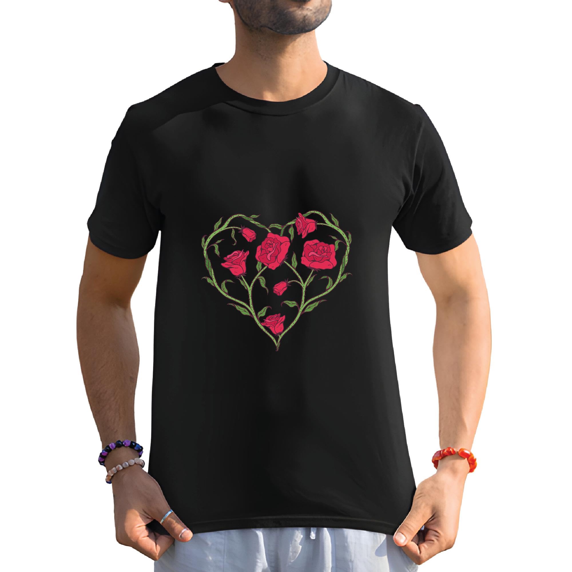 Rose Heart Gift Unique Heart Shaped Gift for Rose Lovers Men Women Black Multicolor T shirt