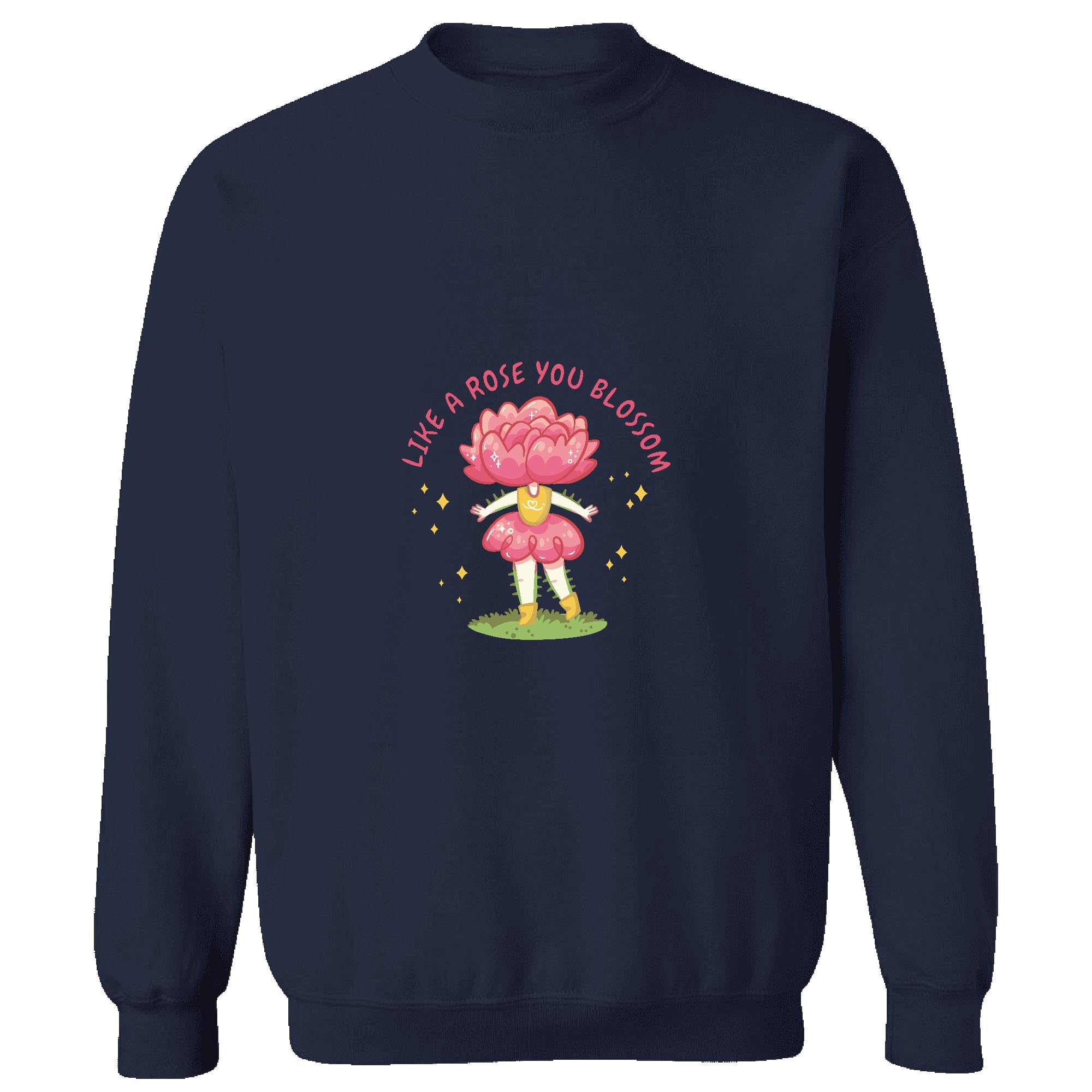 Rose Girl Gift Inspirational Quote for Girls Blossom and Shine Navy Muticolor Unisex Sweatshirt