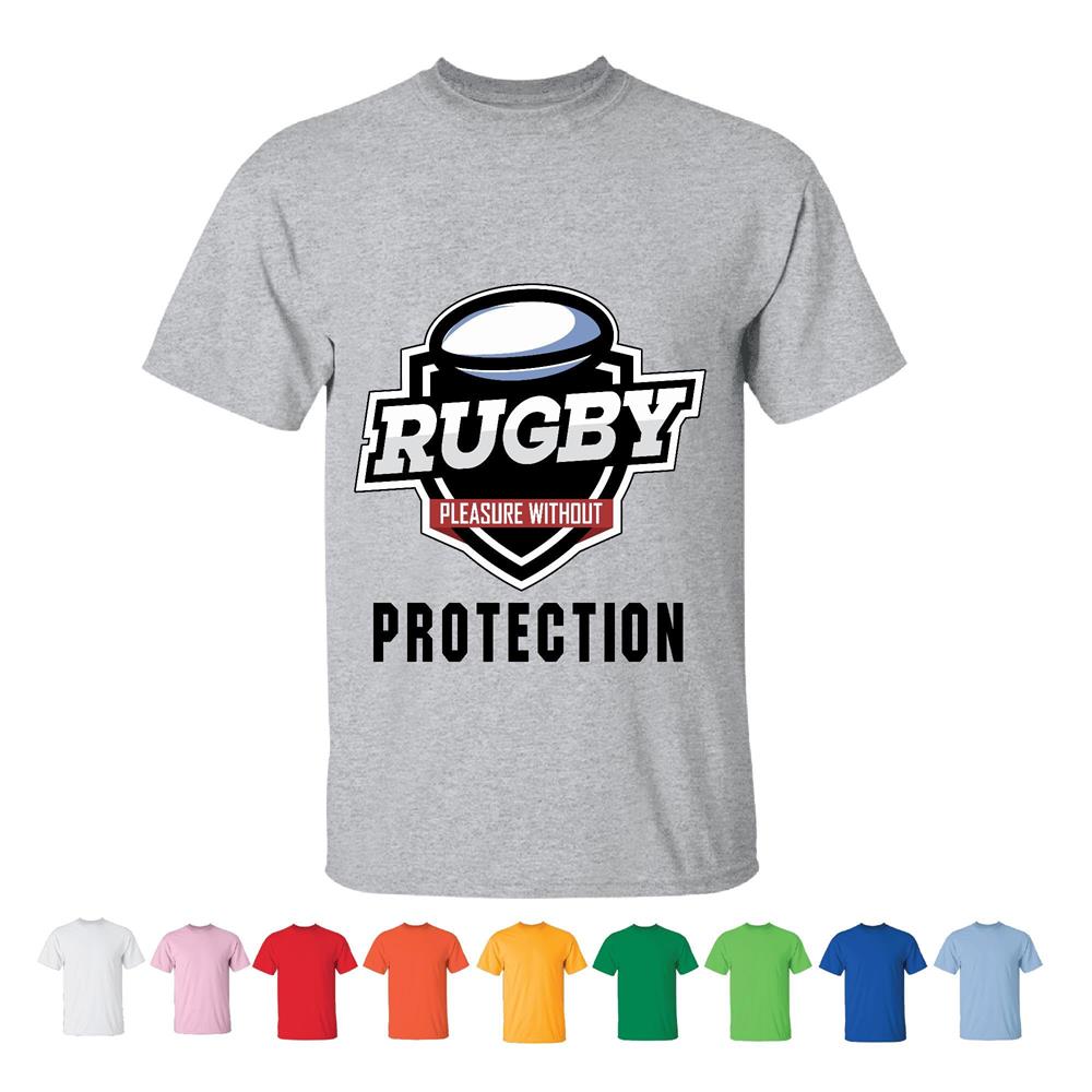 Rugby pleasure without protection humor saying for Rugby player Men Women White Gray T shirt