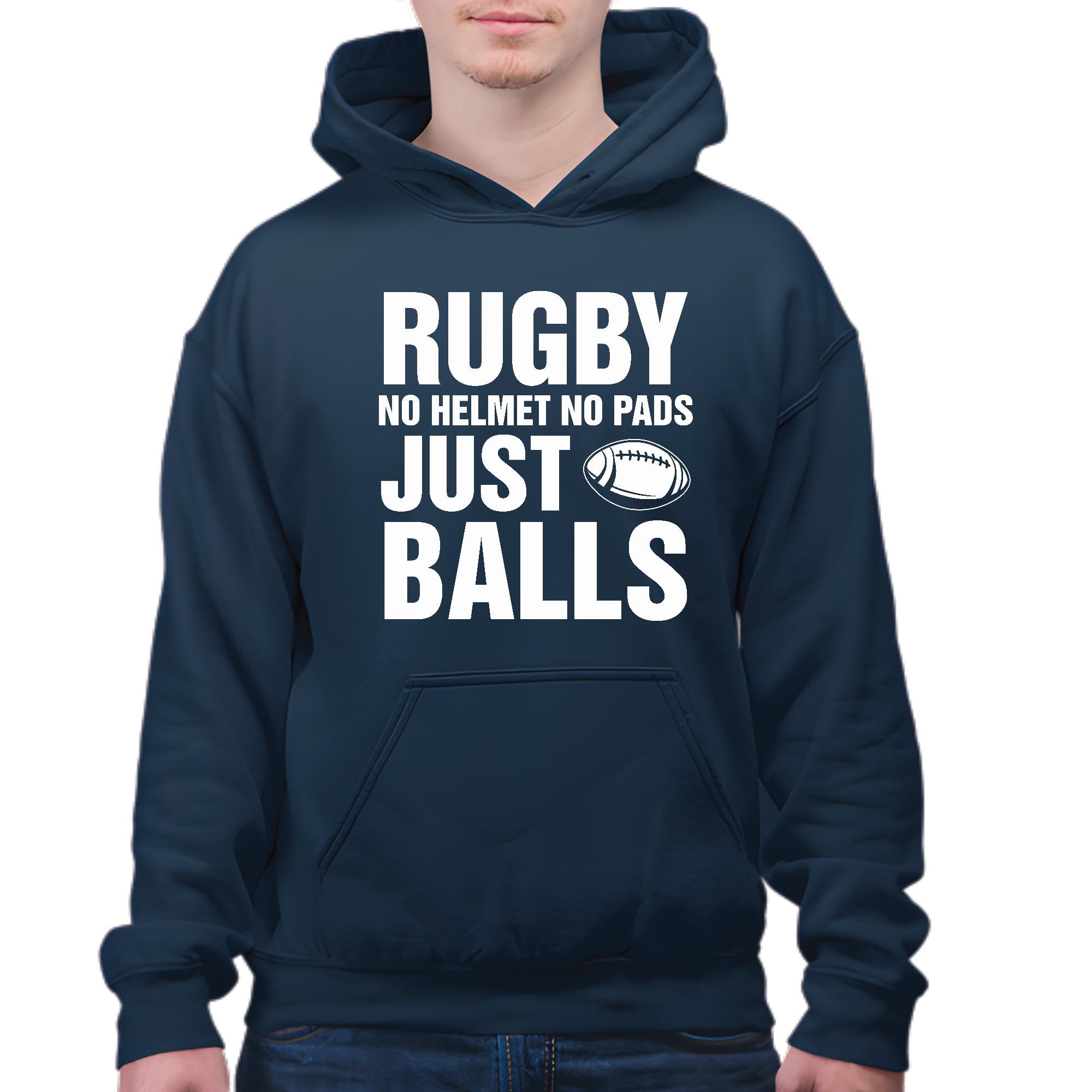 Rugby Gift Idea for Sports Fans – No Helmet No Pads Just Balls Navy and Muticolor Unisex Hoodie