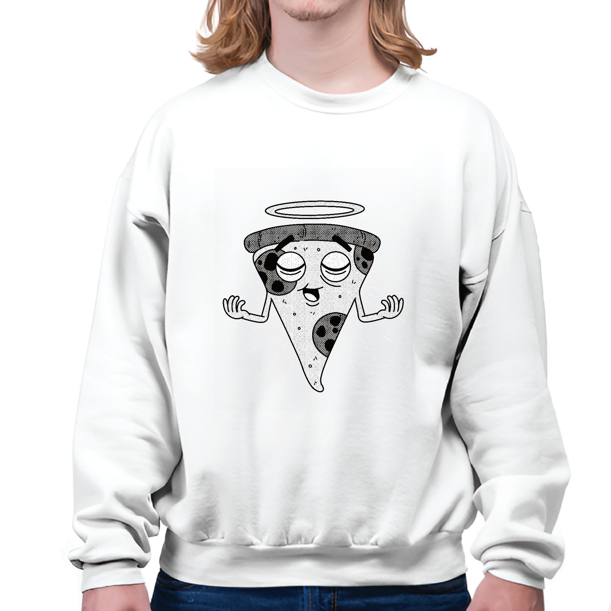 Sacred Pizza Gift Cartoon Pizza Illustration for Fast Food Lovers Grey White Muticolor Unisex Sweatshirt
