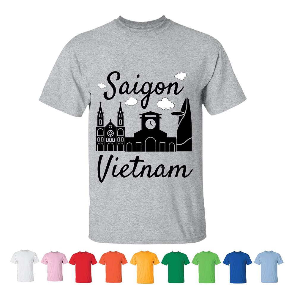 Saigon Vietnam Flag Gift for Tourists Travelers Souvenir Men Women White Gray T shirt