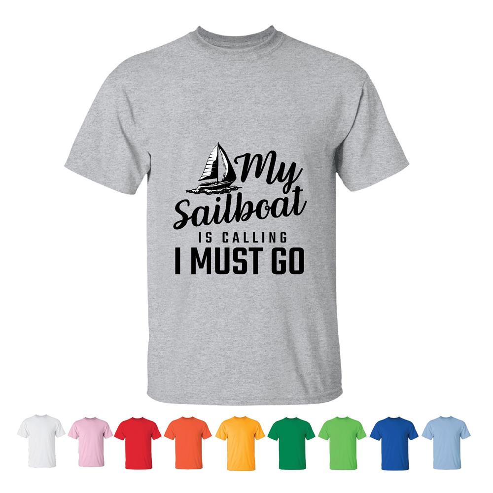 Sailboat Sailing Boating Travel Gift for Coworker Friends Humor Men Women White Gray T shirt