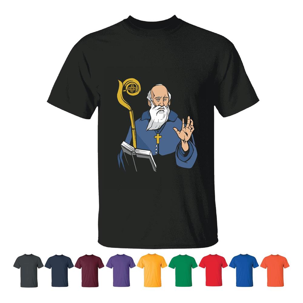 Saint Benedict Gift Christian Artwork for Believers Men Women Black T shirt