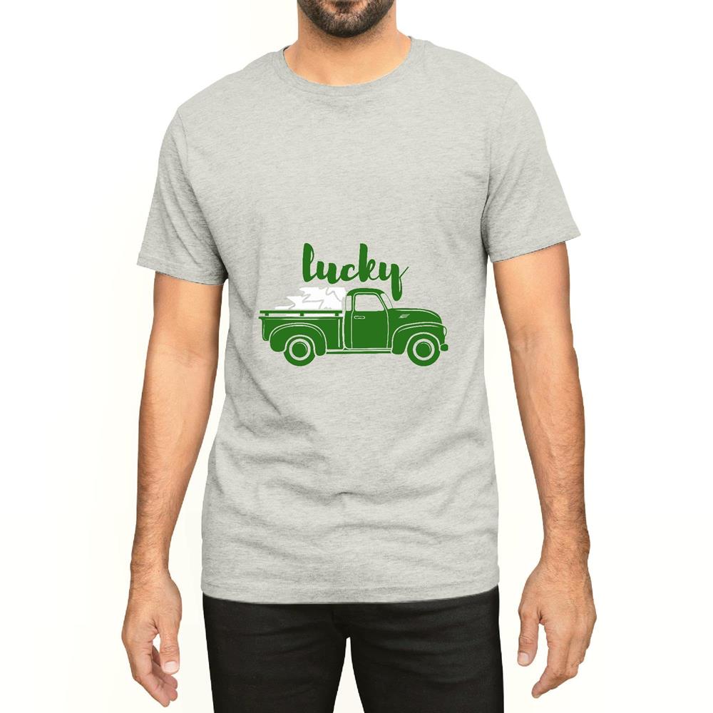 Saint Patricks day vintage old truck Patricks day with Cloverleaf Men Women White Gray Multicolor T shirt