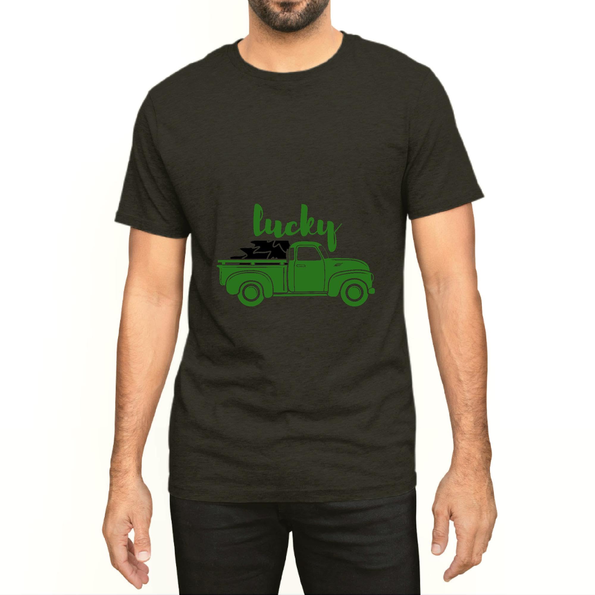 Saint Patricks day vintage old truck Patricks day with Cloverleaf Men Women Black Multicolor T shirt