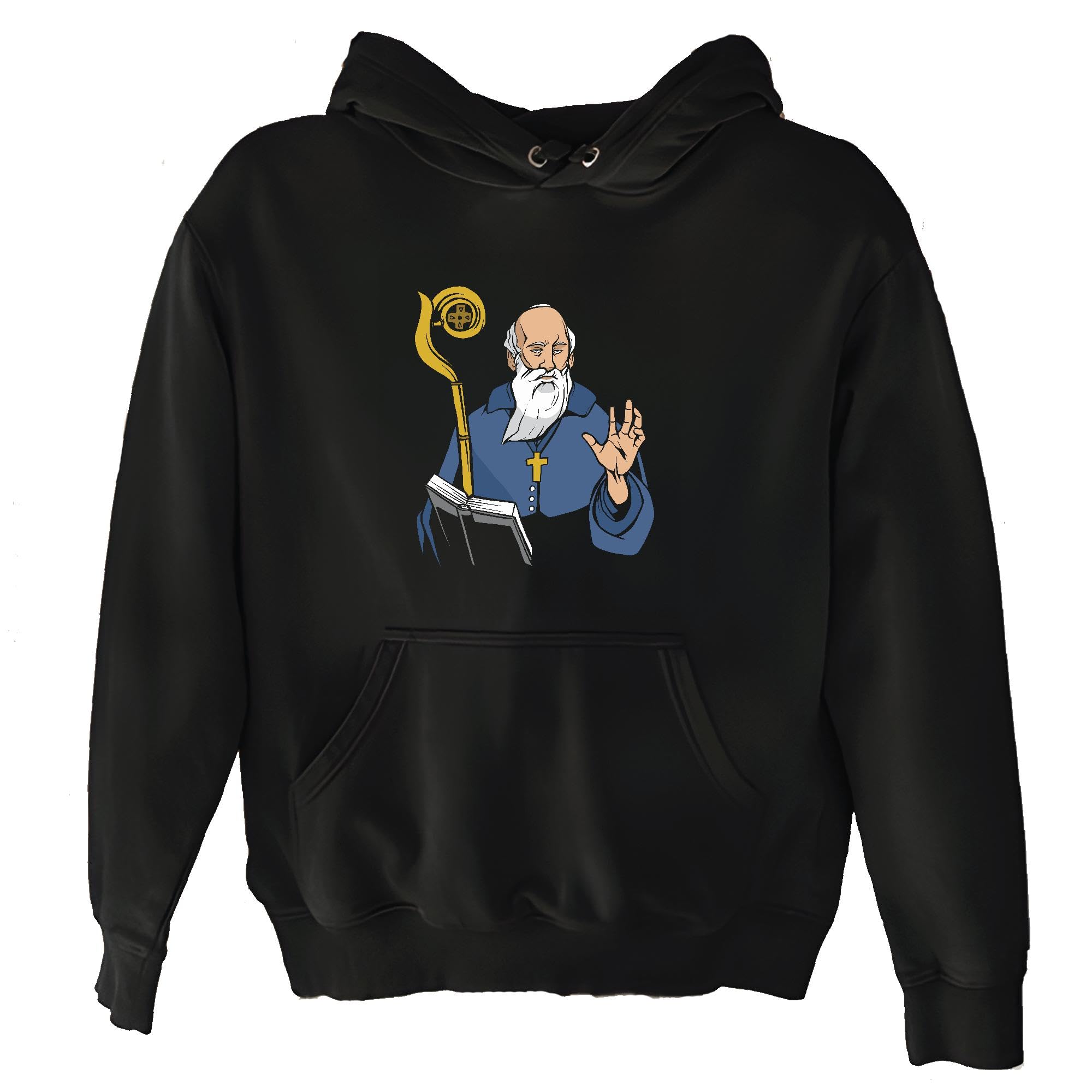 Saint Benedict Gift Christian Artwork for Believers Black and Muticolor Unisex Hoodie