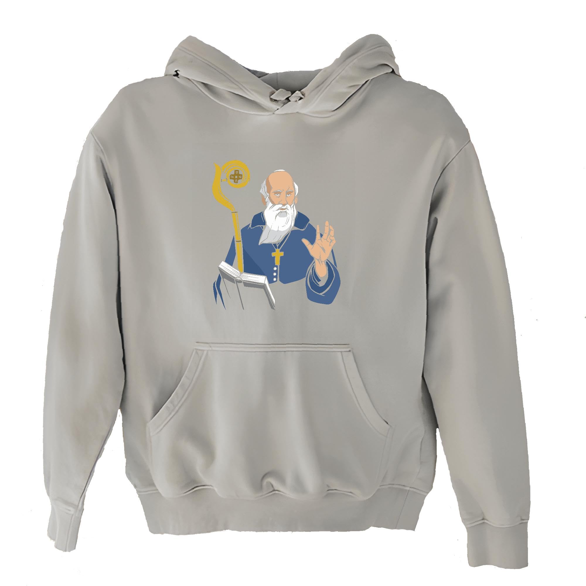 Saint Benedict Gift Christian Artwork for Believers Gray and Muticolor Unisex Hoodie