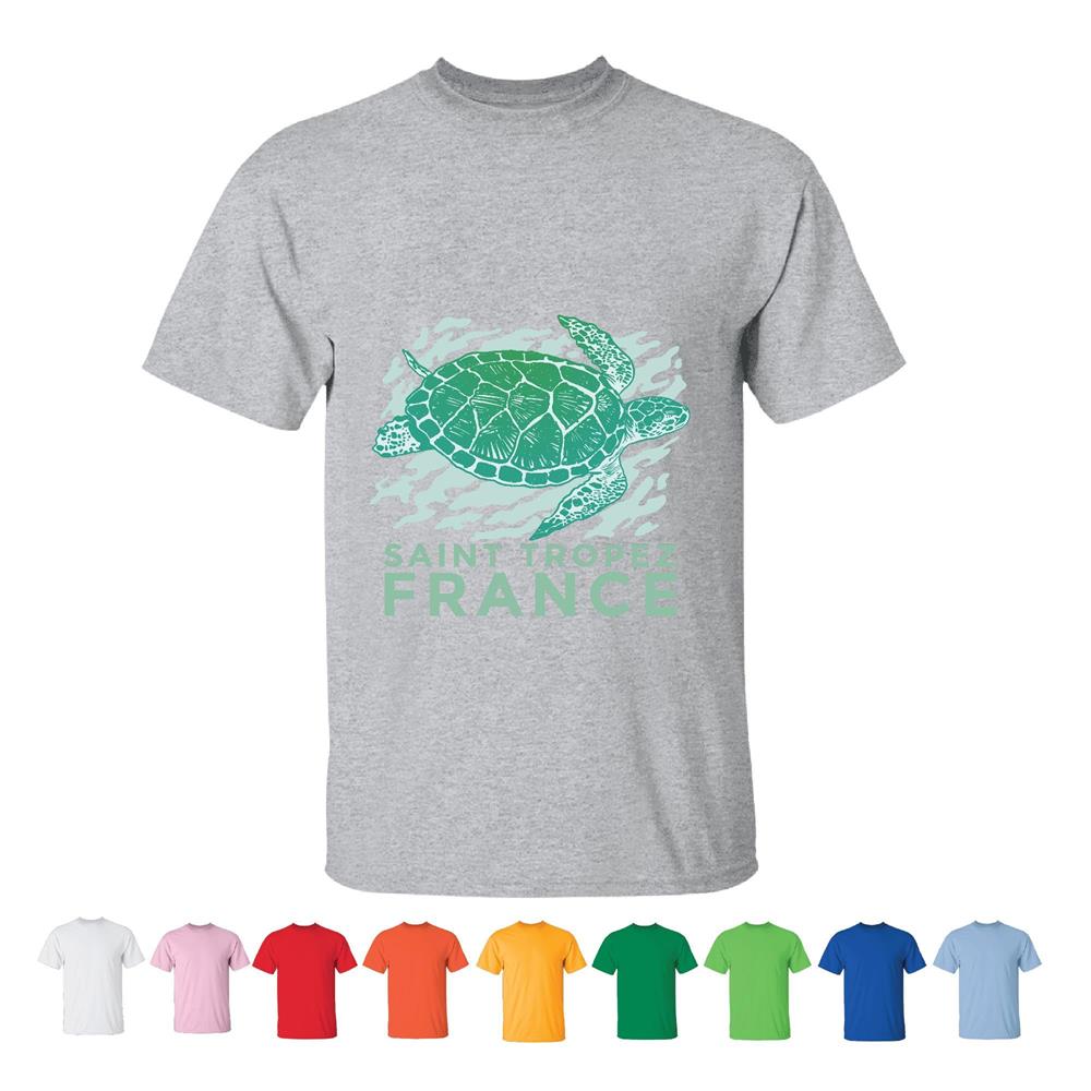 Saint Tropez Sea Turtle Animal Swimming Gift for Nature Lovers Men Women White Gray T shirt