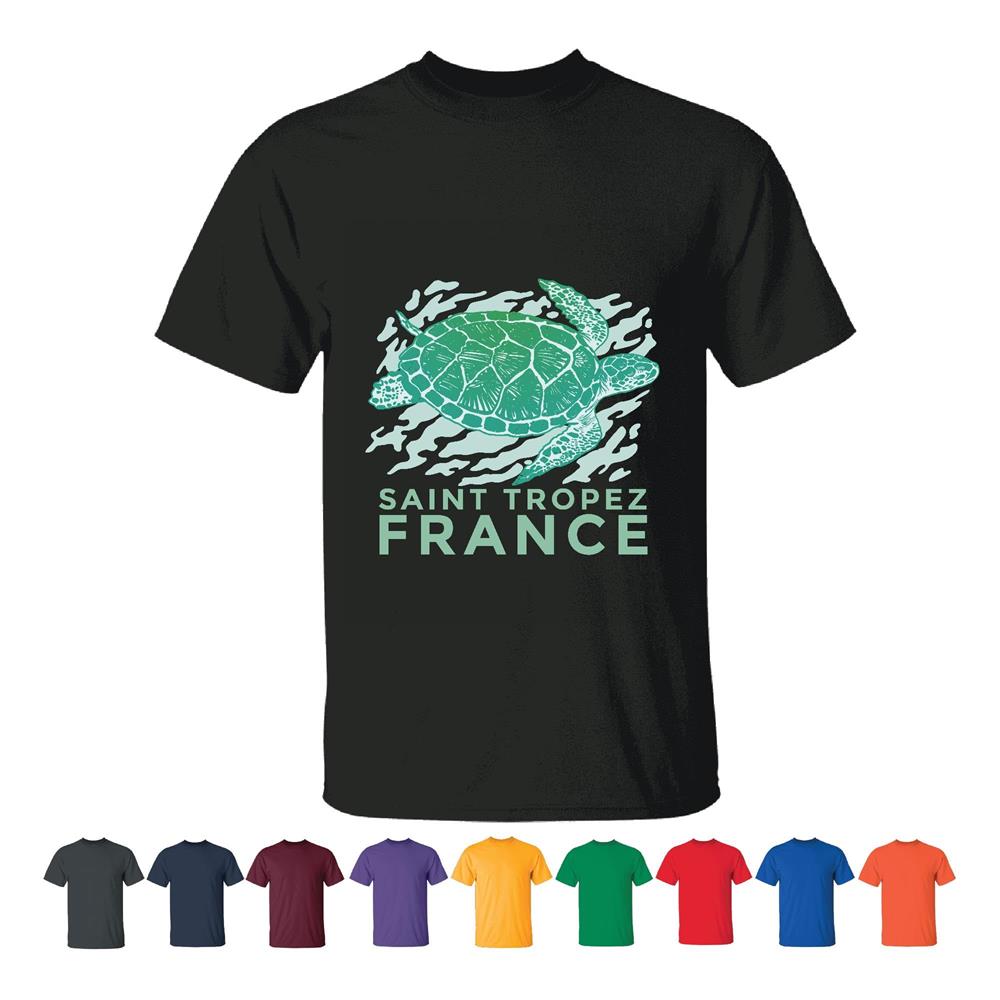 Saint Tropez Sea Turtle Animal Swimming Gift for Nature Lovers Men Women Black T shirt