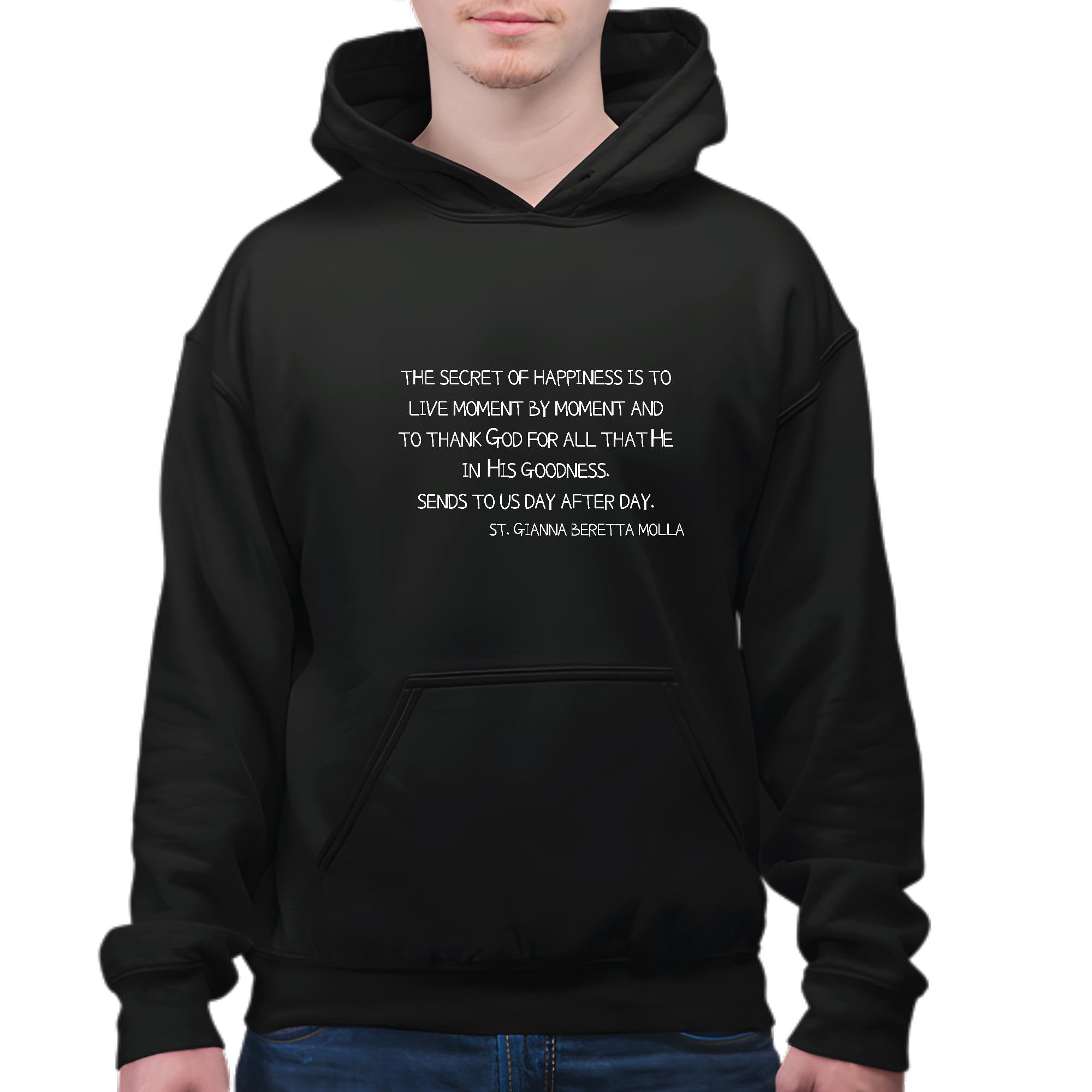 Saint Quote Inspirational Day Feast Religious Catholic Christian Church Gift Black and Muticolor Unisex Hoodie