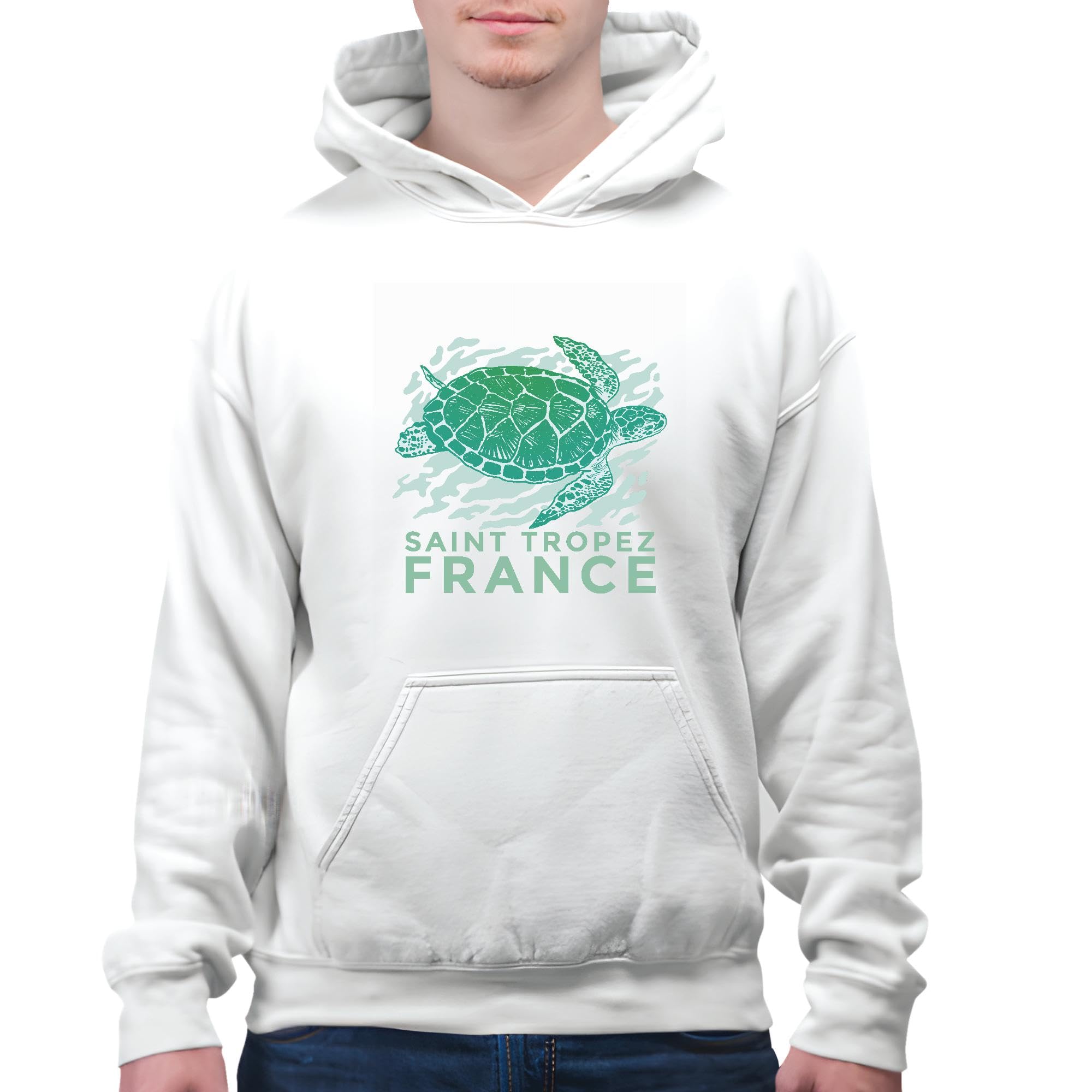 Saint Tropez Sea Turtle Animal Swimming Gift for Nature Lovers White and Muticolor Unisex Hoodie