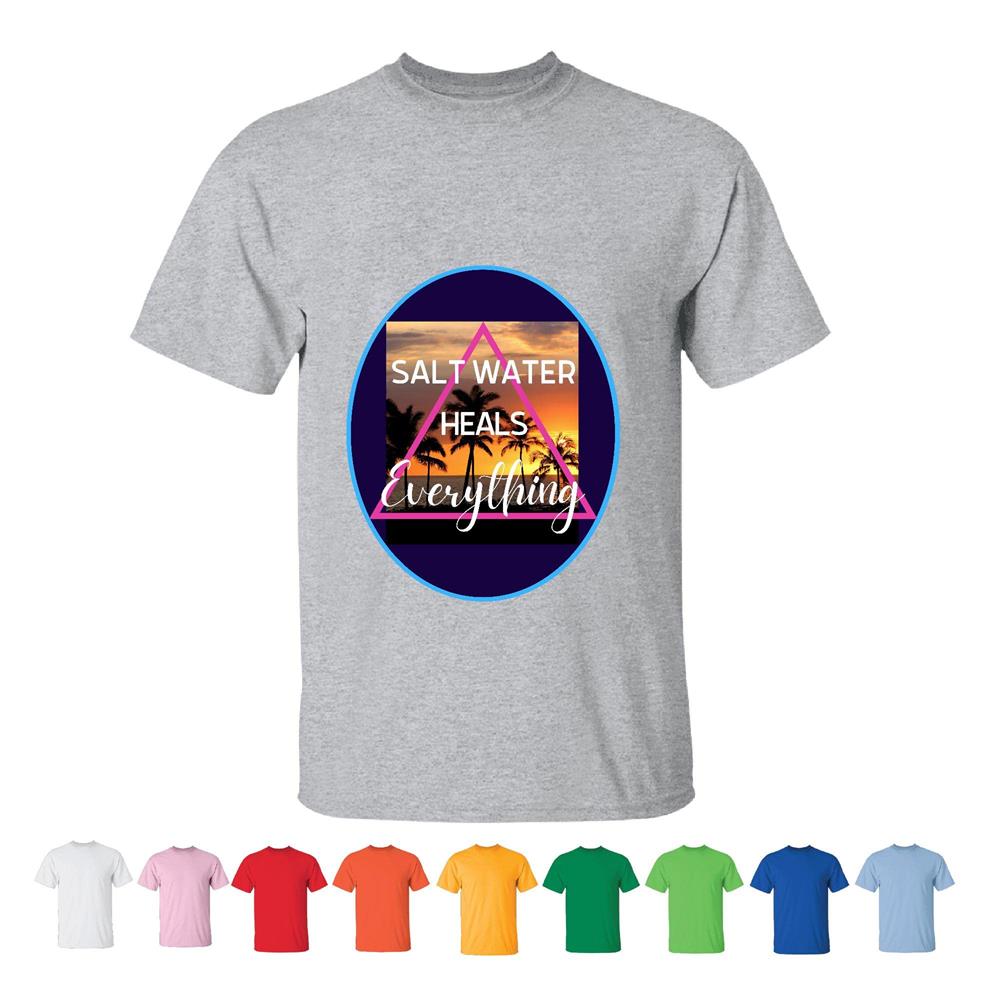 Salt Water heals everything funny for Summer beach Seaside Vacation and beach lovers Men Women White Gray T shirt