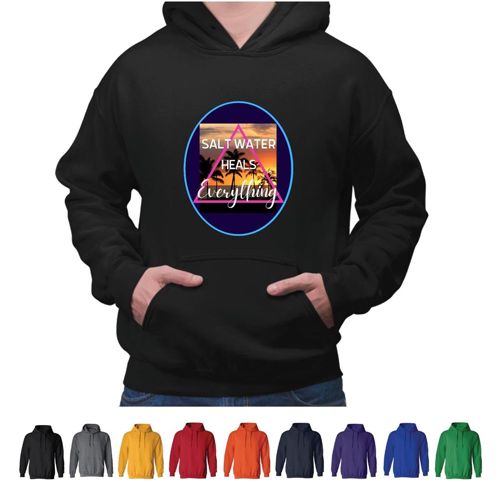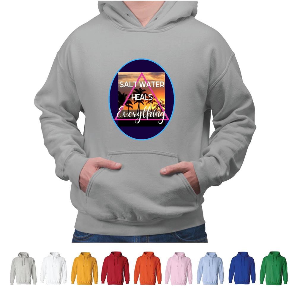 Salt Water heals everything funny for Summer beach Seaside Vacation and Retirement Gray and Muticolor Unisex Hoodie