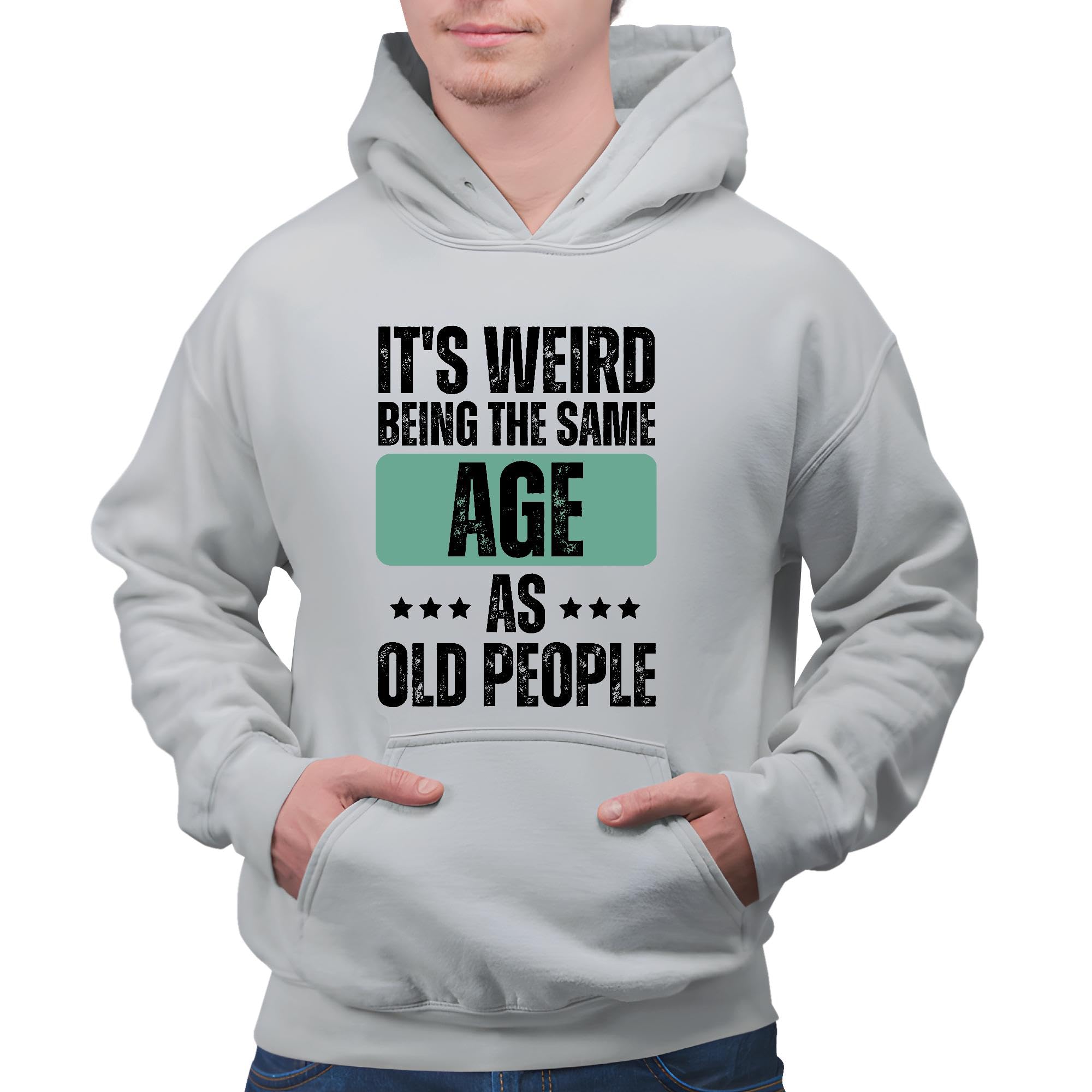 Same Age as Elderly Funny Gift Idea for Young Adults Gray and Muticolor Unisex Hoodie