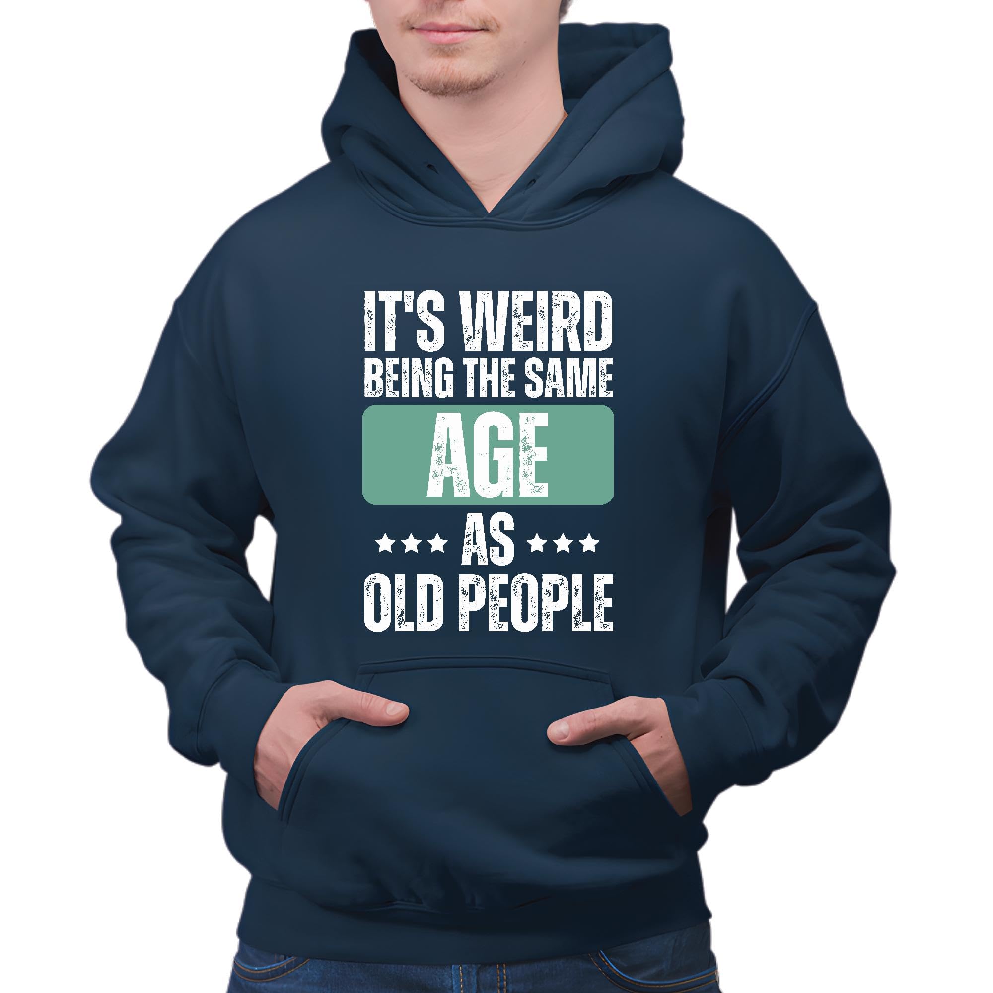 Same Age as Elderly Funny Gift Idea for Young Adults Navy and Muticolor Unisex Hoodie