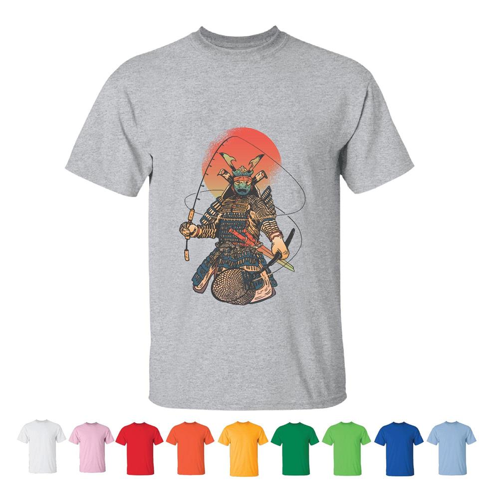 Samurai Warrior Fishing Gift for Men Fishing Rod and Spear Fishing Men Women White Gray T shirt