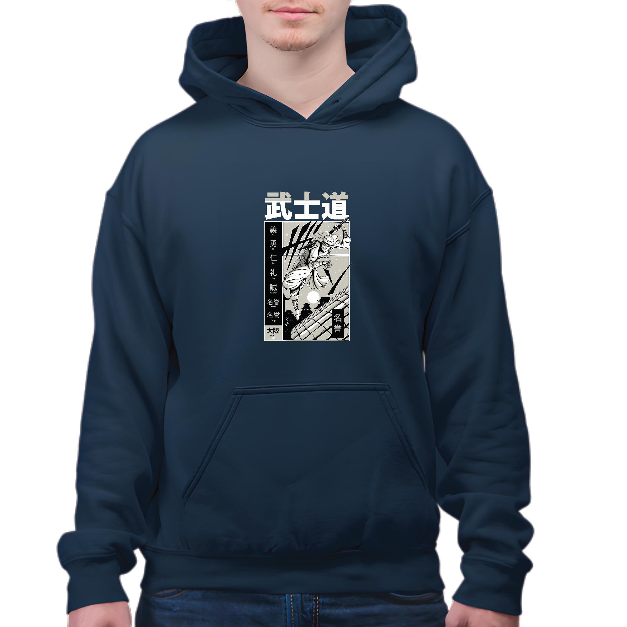 Samurai Graphic Gift Idea Unique Present for Anime Manga and Martial Arts Fans Navy and Muticolor Unisex Hoodie