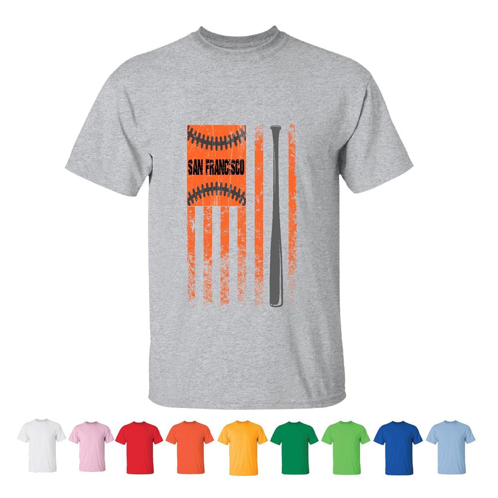 San Francisco Flag with Baseball Bat for Baseball Player Men Women White Gray T shirt